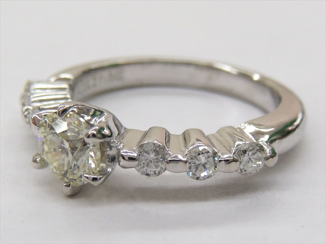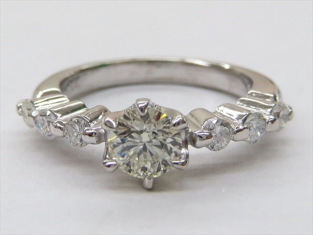 A-0126 Ptダイヤリング ダイヤルースでオーダメイドプラチナリングへのご紹介です。6本爪の細目の造りで腕の両サイドにラージメレダイヤを3pcsづつセッティング、センターのダイヤを引き立てるデザインのオーダメイドリングです。オーダメイドでお好みのデザインのジュエリーを製作致します。お気軽にアトリエMにお越し下さい。