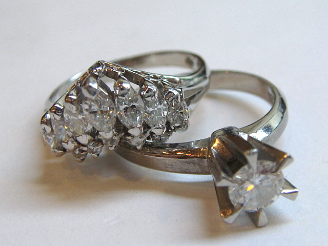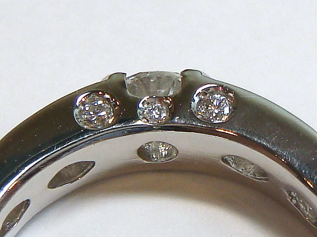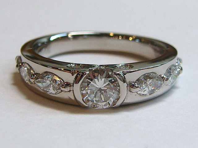A-0172 Ptダイヤ0.3ctリング ビフォー アフター マーキスを落とし込んで留めているので、引っ掛かりにくくなっています 中石、メレダイヤも引っ掛かりの無いデザイン 2本の指輪の石を全て使ってリングをオーダーメイドで制作しました肩にマーキスダイヤを3pcsづつ、サイドにメレダイヤをセッティングして豪華な雰囲気に仕上がっています。