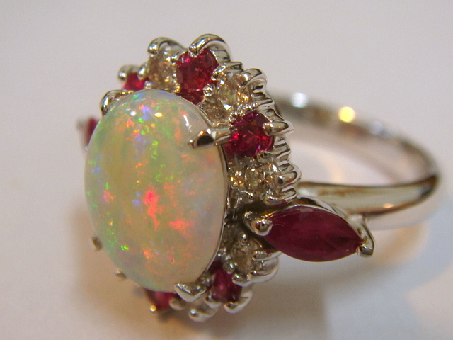 A-0056 Ptオパール/ルビー・ダイヤリング