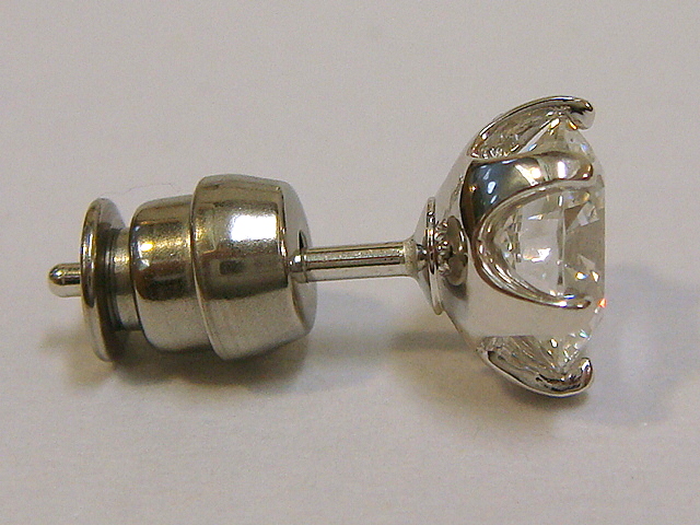 Ptダイヤ1ct ピアス お持ち頂いたダイヤルースでPt6本爪ピアスを製作片方1ct、VS1 Eカラー カットVG 極上のダイヤモンドです。 石が大きく、高額なので絶対に落とさない様にキャッチに「ピアスロック」をチョイスしました。 石の手配も可能です。ご予算、石のグレードなどお聞かせ下さい。